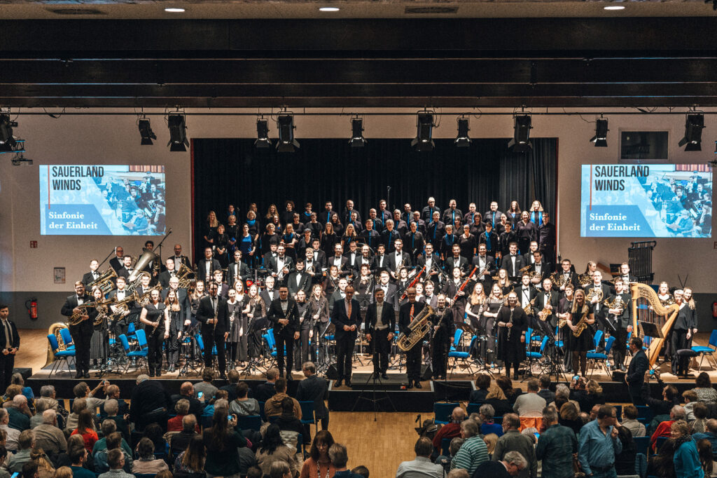 Zudem feierten die Sauerland Winds gemeinsam mit dem international renommierten Solo-Tubisten Daniel Ridder die Deutschlandpremiere von „Bandsterix und Tubelix“, einer facettenreichen und technisch anspruchsvollen Komposition des spanischen Komponisten Ferrer Ferran. Es war ein Konzertabend, der künstlerisch Maßstäbe setzte und beim Publikum für Begeisterung sorgte.